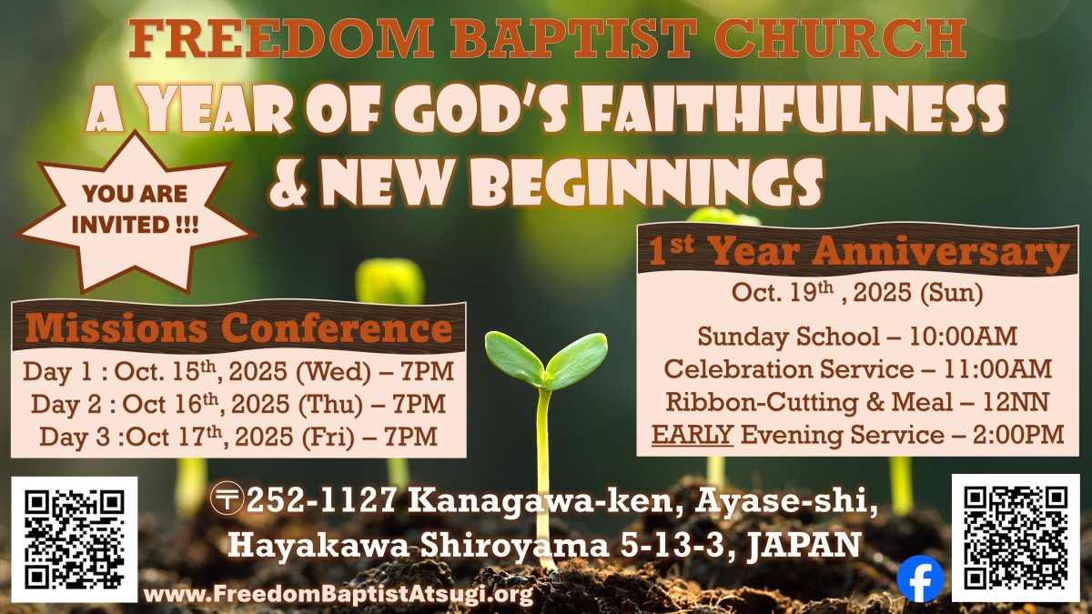 We are a new independent and fundamental Baptist church plant that started in 2024. We minister to the Atsugi and Zama bases and its surrounding communities.